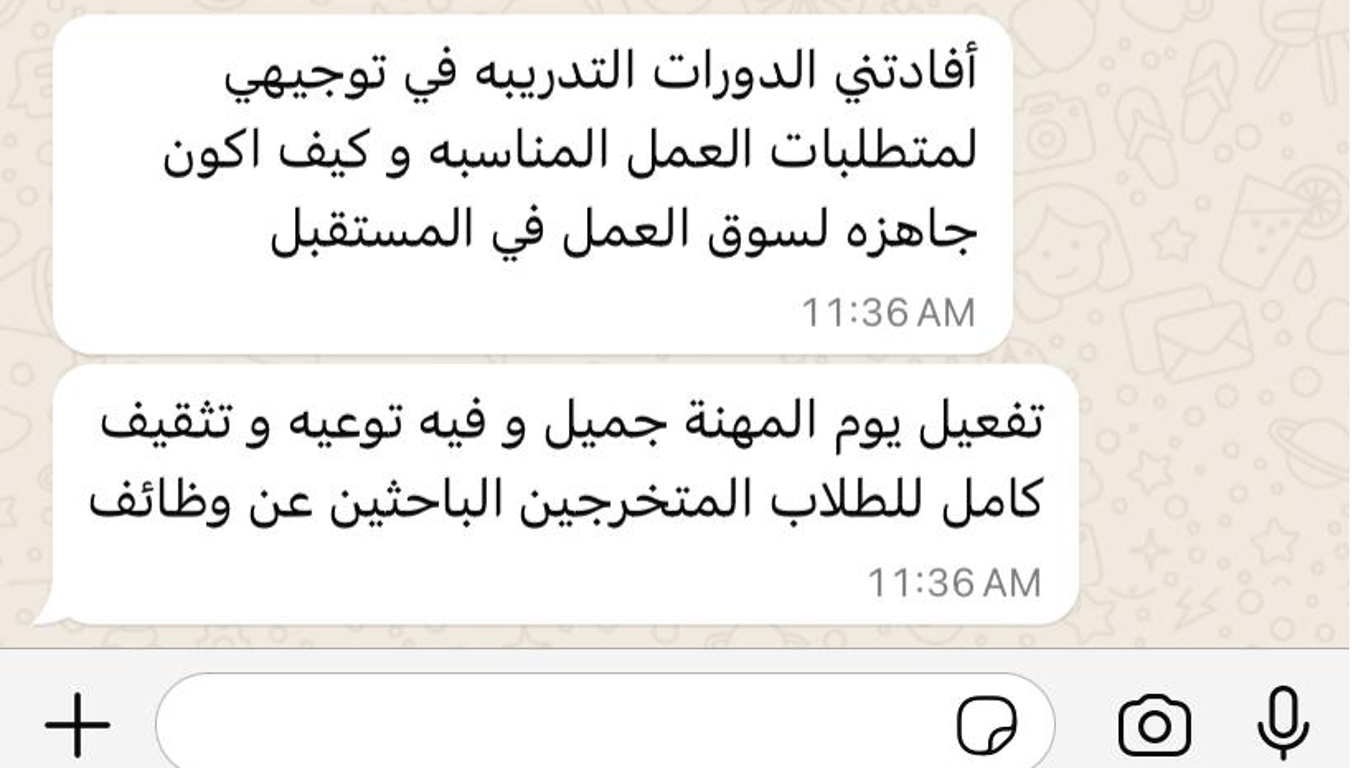 - نقدم بتفعيل يوم المهنة بالشراكة مع وزارة التعليم و اداراتها المدرسية